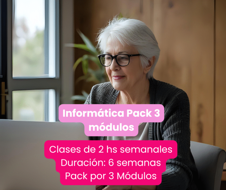 Si querés resolver un tema puntual (archivos, Internet, ofimática, seguridad, etc.) y no tenés tiempo para un curso largo, estos módulos son para vos. Aprendés lo que necesitás hoy, con un/a mentor/a que te acompaña en vivo y te deja un plan claro para seguir.